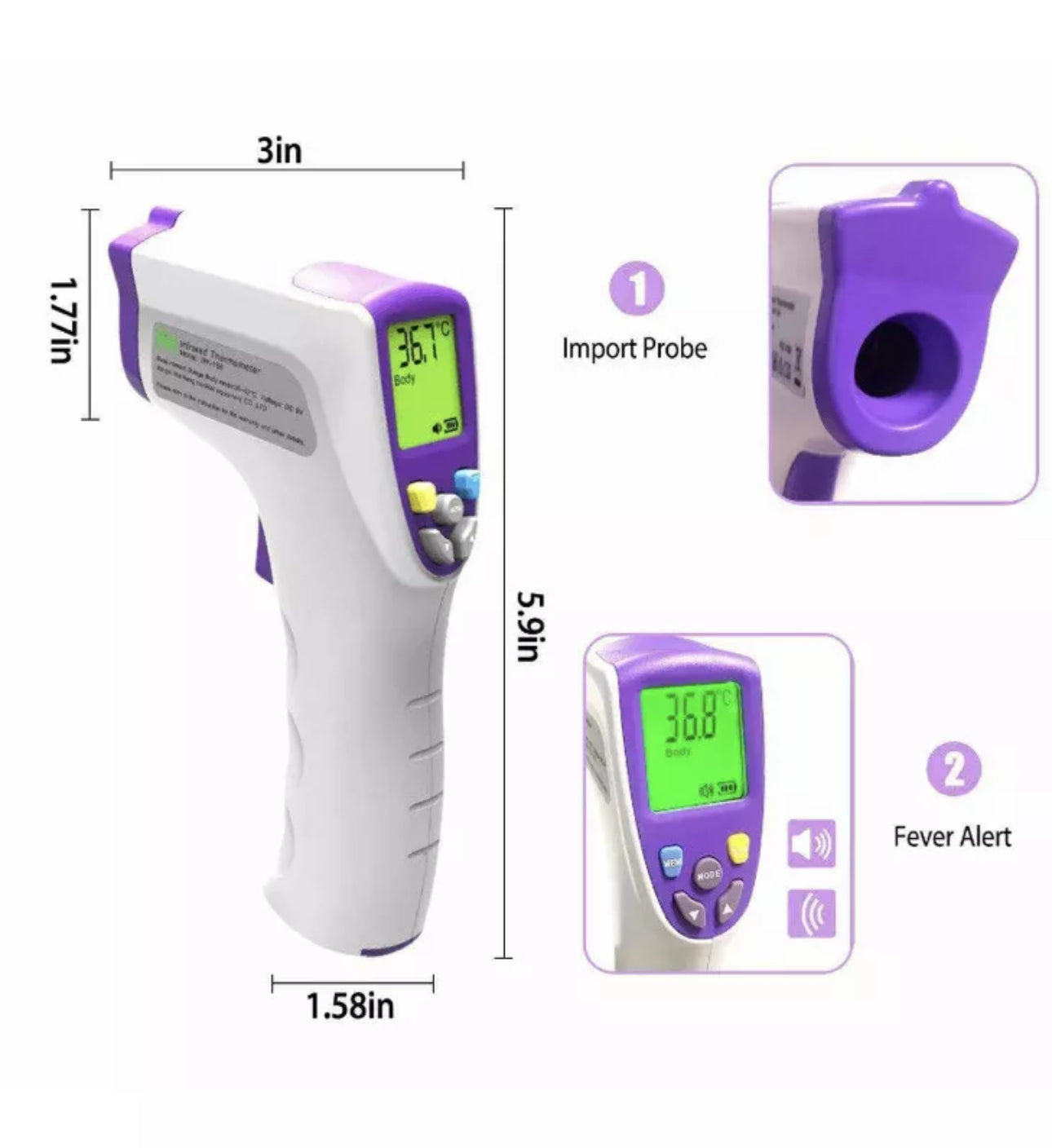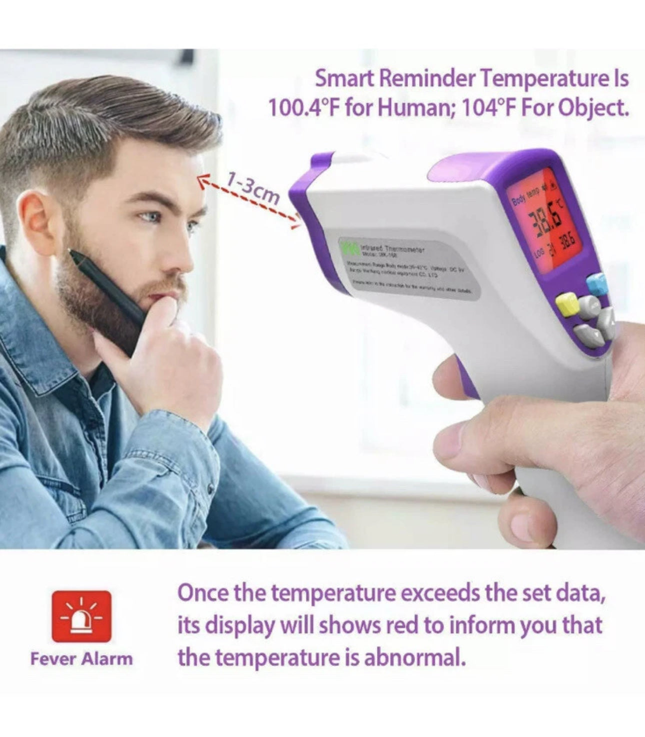 Keep your family safe with our Infrared Thermometer featuring a Fever Alarm! This non-contact digital device offers quick, accurate readings from 1-3 cm away, with a smart reminder for human (100.4°F) and object (104°F) temperatures. Its red display alerts you to abnormal readings—perfect for home health monitoring. Beat big retailer prices with fast nationwide shipping—get yours now!